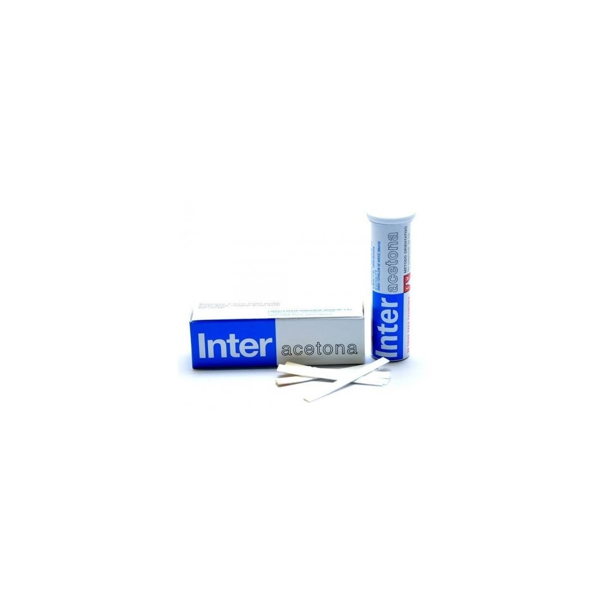 Tiras de papel reactivo para la determinación de acetona en la orina. Constituyen una excelente ayuda para el diagnóstico de la Cetonuria o Cetonemia. Permite al paciente determinar por sí mismo, de una manera sencilla, cómoda y suficientemente precisa, la proporción de acetona (cuerpos cetónicos) presente en la orina. Utilizar orina reciente, recogida en un recipiente perfectamente limpio. Introducir en la orina el extremo reactivo de la tira, siguiendo la dirección de la flecha. También puede mojarse directamente en la orina. Retirar inmediatamente y esperar unos 15 segundos. Comparar el color obtenido en la tira con la escala coloreada que figura en la etiqueta del envase, con lo que se tendrá una apreciación de la cantidad de acetona presente en la orina. La comparación debe hacerse